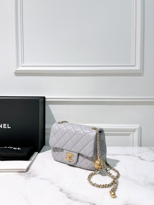 CHANEL PEARL CRUSH MINI SQUARE, Grey/Gold
