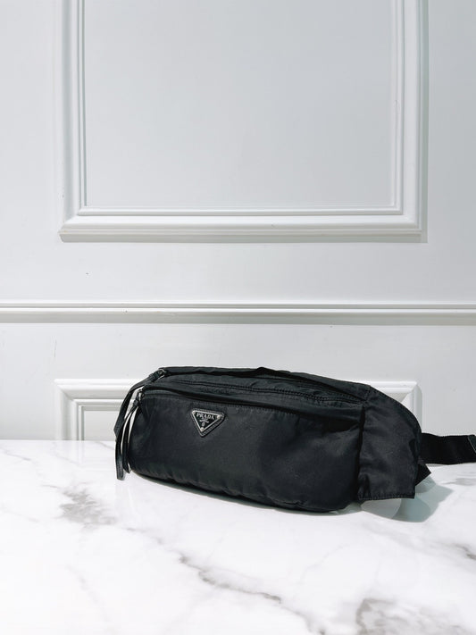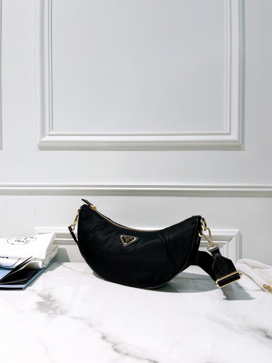 PRADA DEMI-LUNE SHOULDER BAG, Black/Gold