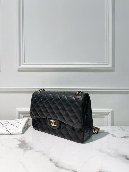 CHANL JUMBO CLASSIC FLAP, Black/Gold