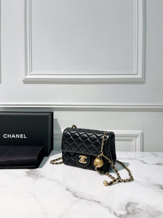 CHANEL 25A PEARL CRUSH MINI FLAP, Black/Gold