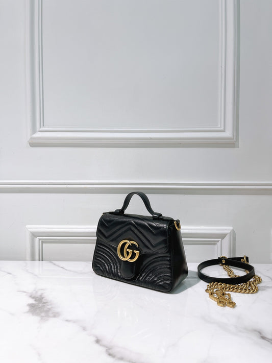 GUCCI MARMONT TOP HANDLE BAG, Black/Gold