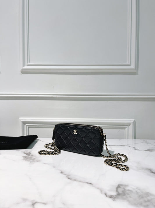 CHANEL DOUBLE ZIP BAG, Black/Gold