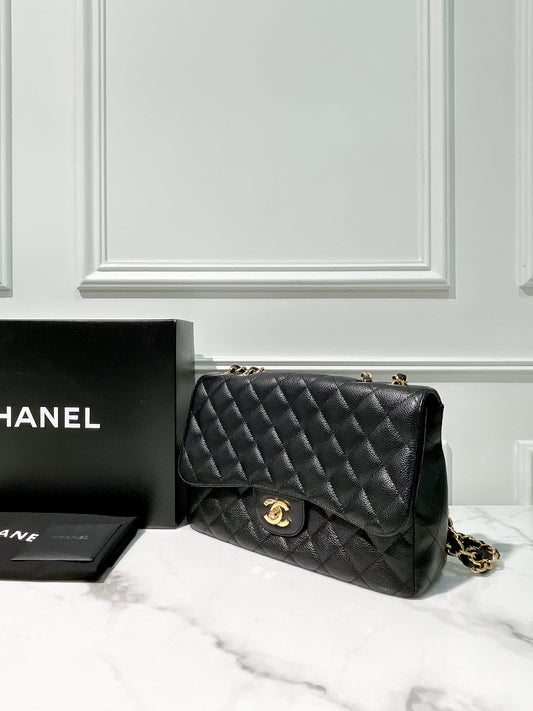 CHANEL SINGLE FLAP JUMBO, Black/Gold