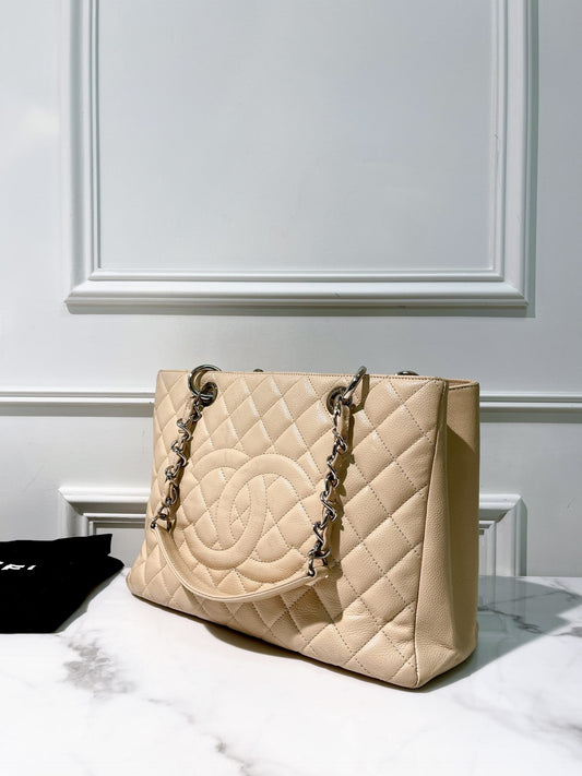 CHANEL GRAND SHOPPING TOTE, Beige/Silver