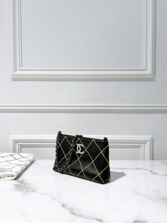 CHANEL VINTAGE SHOULDER BAG, Black/Green/Silver