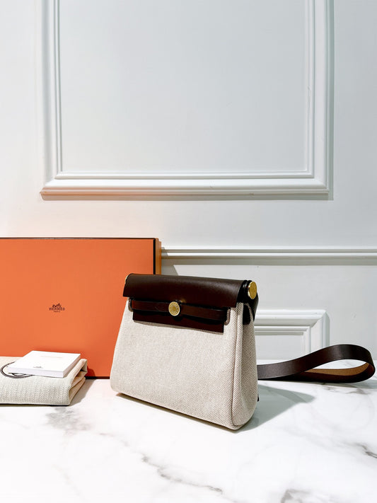 HERMES MINI HERBAG, Ecru Beige/Ebene/Gold