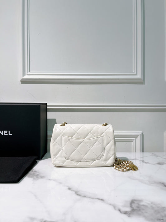 CHANEL 22B MINI FLAP, White/Gold