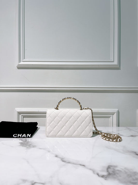 CHANEL 24P CLUTCH WITH HANDLE, White/Gold