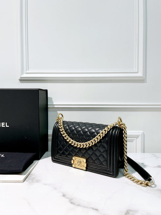 CHANEL MEDIUM BOY HANDBAG, Black/Gold