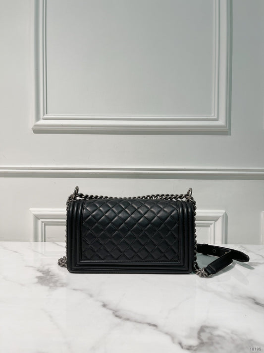 CHANEL MEDIUM BOY HANDBAG, Black/Silver