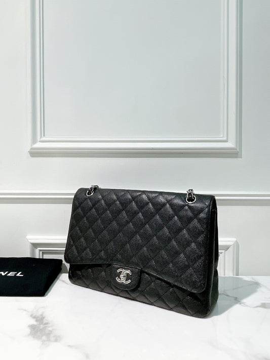 CHANEL CLASSIC FLAP MAXI, BLACK/SILVER