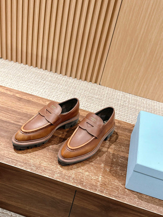 Prada New British-Vintage Pointed-Toe Loafers, Brown