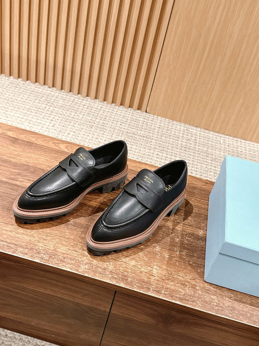 Prada New British-Vintage Pointed-Toe Loafers, Black