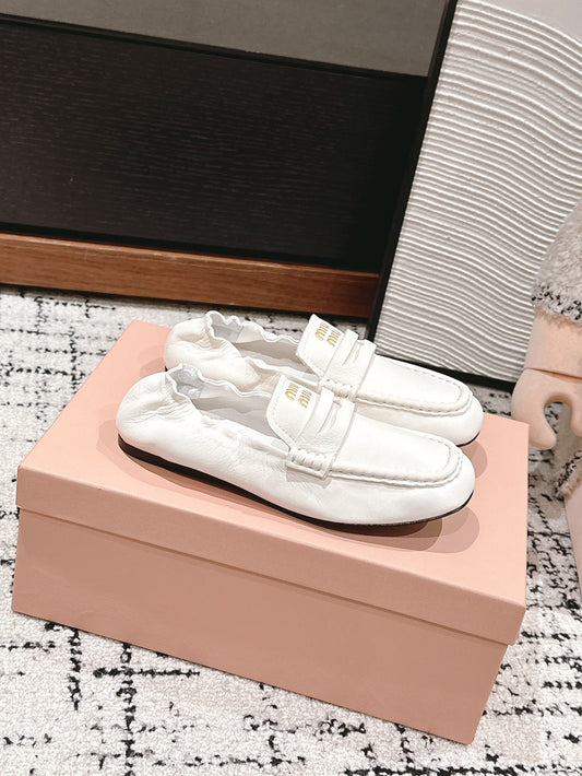 Miu Miu Embossed-logo Loafers, White