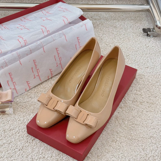 Ferragamo Fila-Square-Toe Best-Seller Bow Flats, Beige