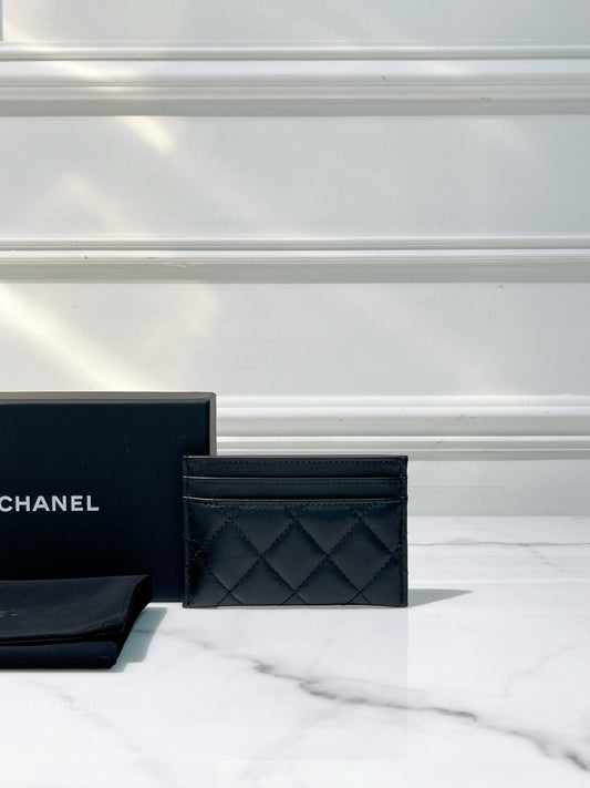 CHANEL 2.55 CARD HOLDER, Black/Gold