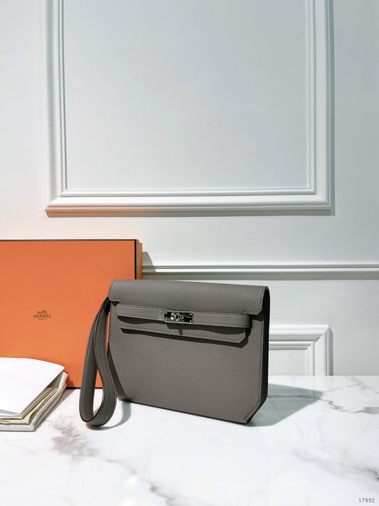 HERMES KELLY DEPECHES 25 POUCH, Gris Etain/Silver