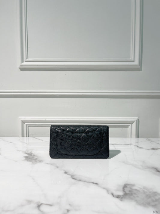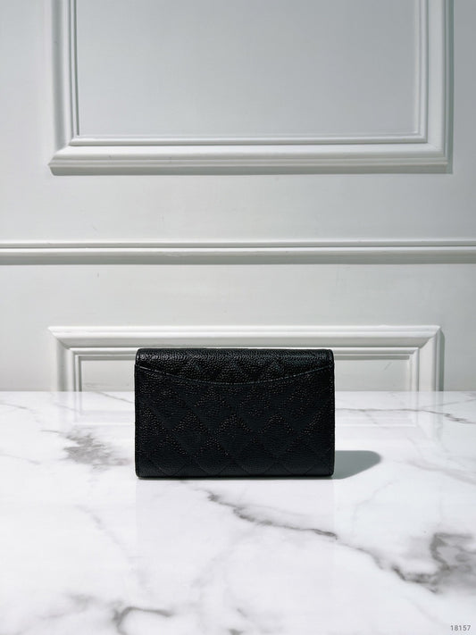CHANEL CAVIAR CLASSIC WALLET, Black/Silver