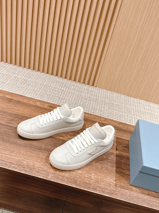 PRADA Leather Thin-Sole Casual Sneakers, White
